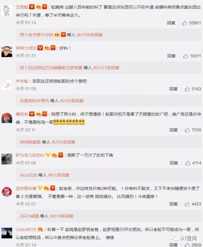 蛇哥深夜曝光“卧底情报”,惨遭王思聪、德云色、带师兄和远洋君等人吐槽“村网通”