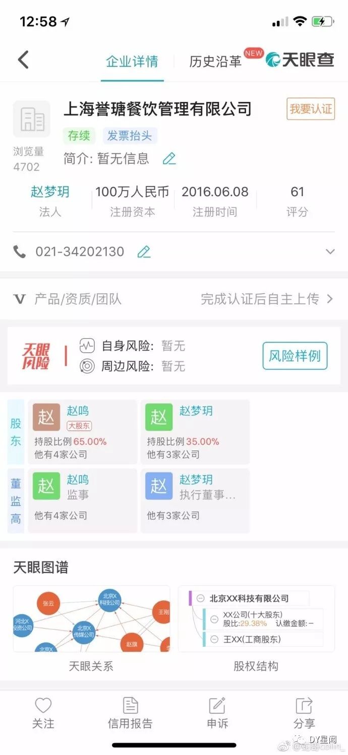 从下图我们可以到:图中赵鸣名下有家公司叫上海蓝鳍文化传媒有限公司,这家公司的另外一个股东叫:武汉斗鱼网络科技有限公司,而赵鸣是UU的父亲。