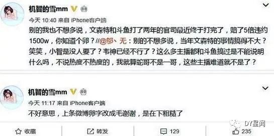 斗鱼绝地板块的雪mm,近日于微博和直播中360度无死角的diss蛇哥,成功的加入“推墙”大队中,而且还举了不少例子给大家,另外还涉及到了英雄联盟主播文森特,雪MM说文森特和斗鱼打了两年官司,赔了5倍违约1500W。