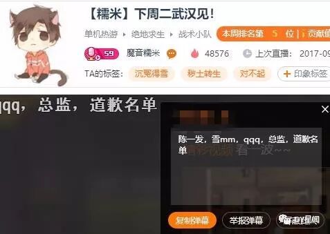 正常情况下,主播被误封,最大的失责方应该是蓝洞才对吧?!而斗鱼的带哥们却不这么想,反而是迅速的列出一份曾经对糯米落井下石的主播名单,分别为陈一发、雪mm、qqq、总监,并且在直播间内带起了道歉节奏。