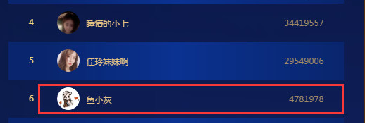 鱼小灰是颜值区的后起之秀,最近她画面不少,有很多土豪多次为其大刷,也正因此,在刚刚结束的年度分区比赛中,她取得了分区第六的好成绩!目前鱼小灰总榜前三均过百万,足以看出她吸金力十足。
