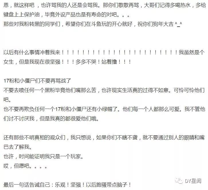 此事在之后的几天不断蔓延,演变成一场以17shou和小僵尸为主的骂战。看着这场节奏愈演愈恶劣,小绿鱼于30当天发表了一篇以道歉为主的书面声明: