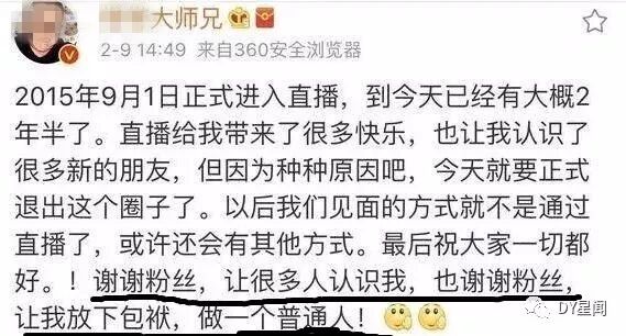 一代尊师带师兄正式告别直播圈:不想再当带明星了!