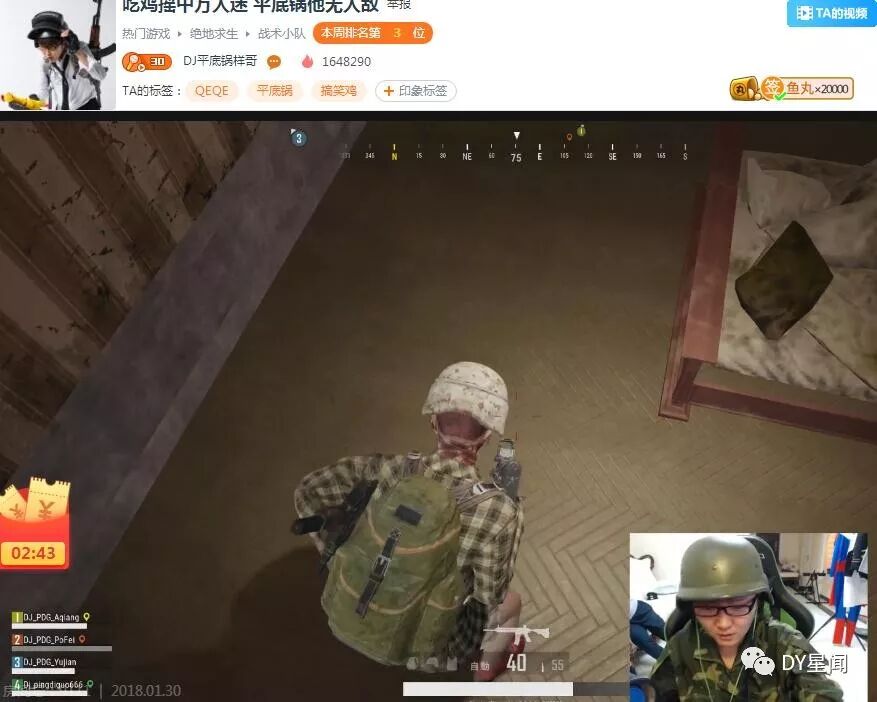 “吃鸡摇”原创DJ平底锅斗鱼首播,远洋、骚白等人送火箭