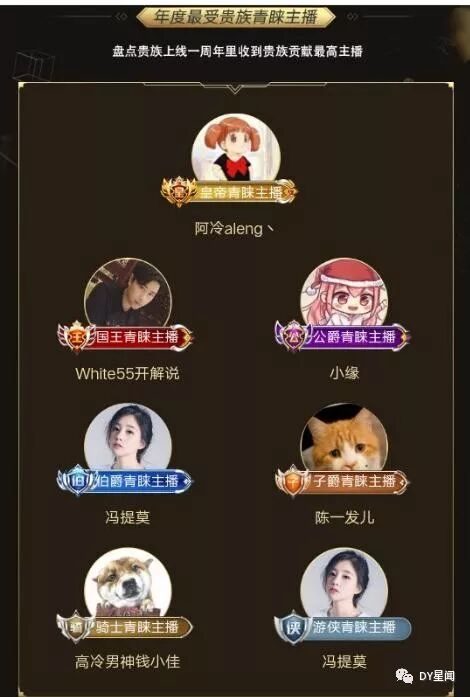 17年收到贵族贡献最高的主播:冷皇,卢国,缘公,冯伯,陈子,钱骑,冯游